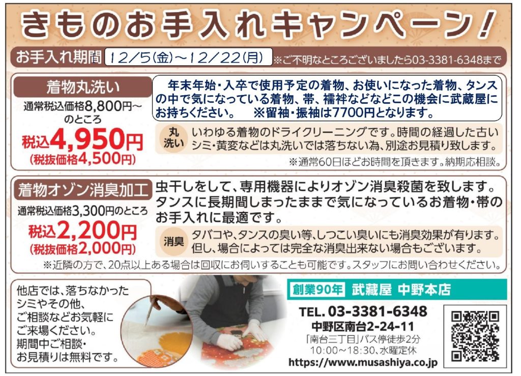 12/5(金)~12/22(月)まで、着物お手入れキャンペーン開催致します。
