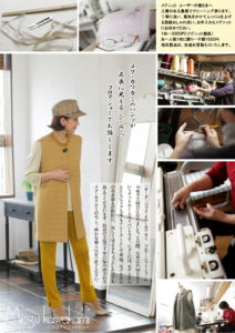 そんなときに出会ったのが、オリジナルブランド「メグ・ニット」を率いる河上恵先生。島根県益田市にアトリエをもち、6名ほどのニッターが日々、先生のデザインを形にしているそうです。先生のお話を聞き、作品に触れたとき、漠然と「日本のにニッターの仕事を守りたい」という気持ちがわき上がってきました。