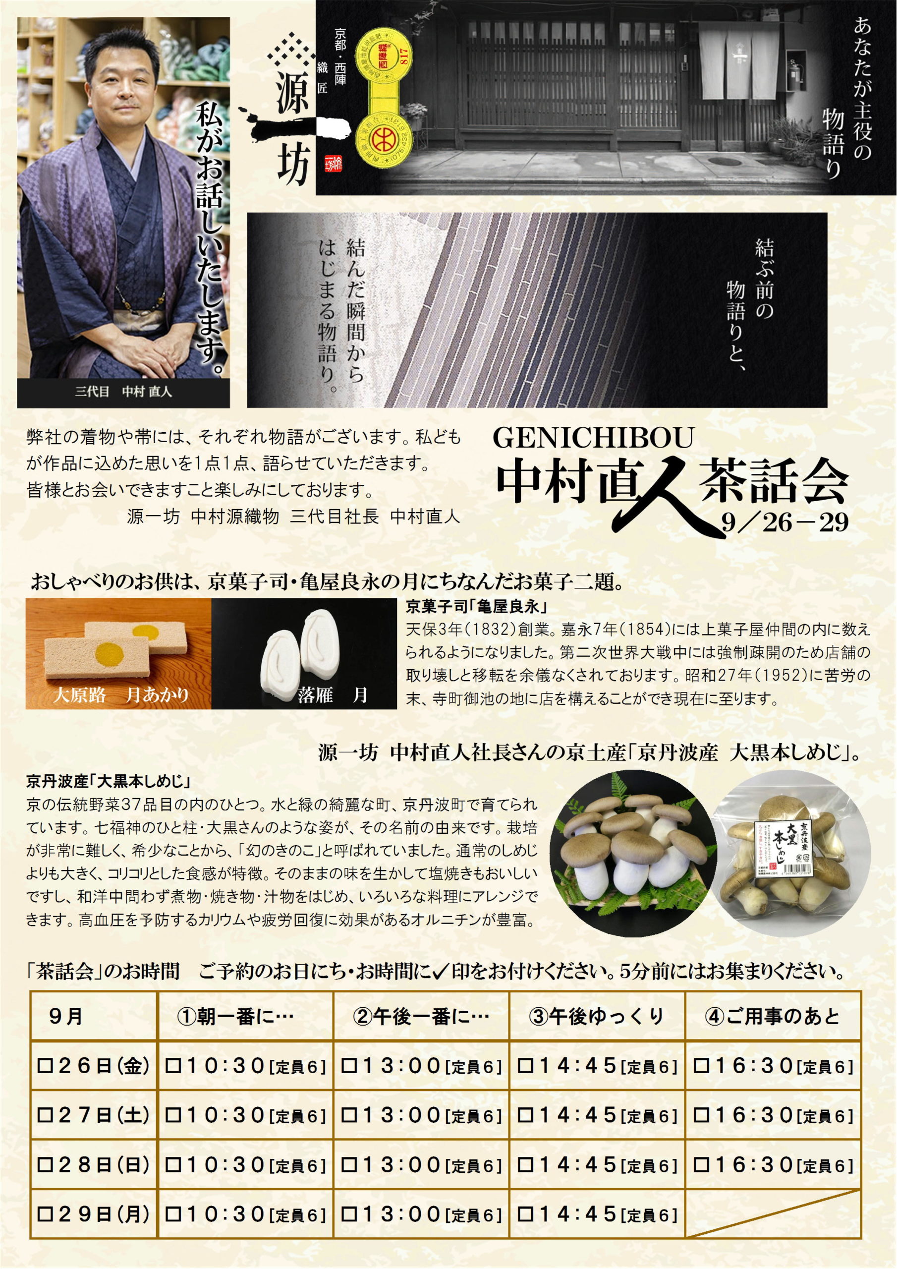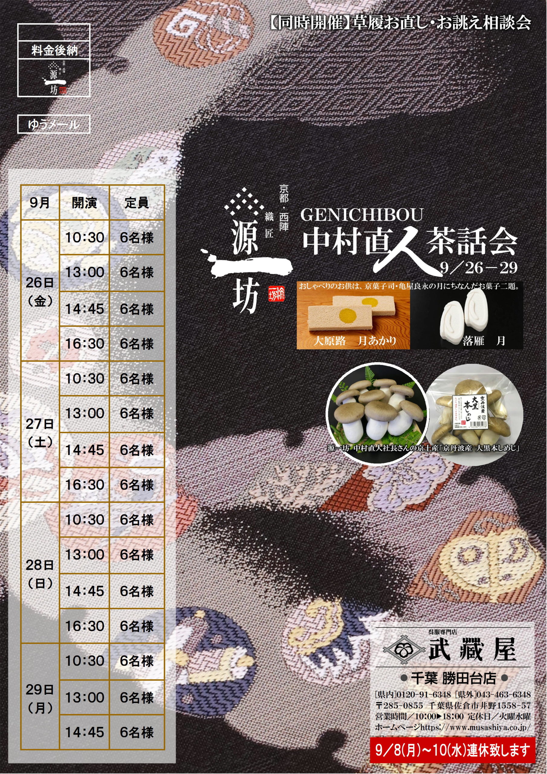 【千葉 勝田台店】源一坊 中村直人 茶話会 [同時開催]草履お直し・お誂え相談会 9/26~