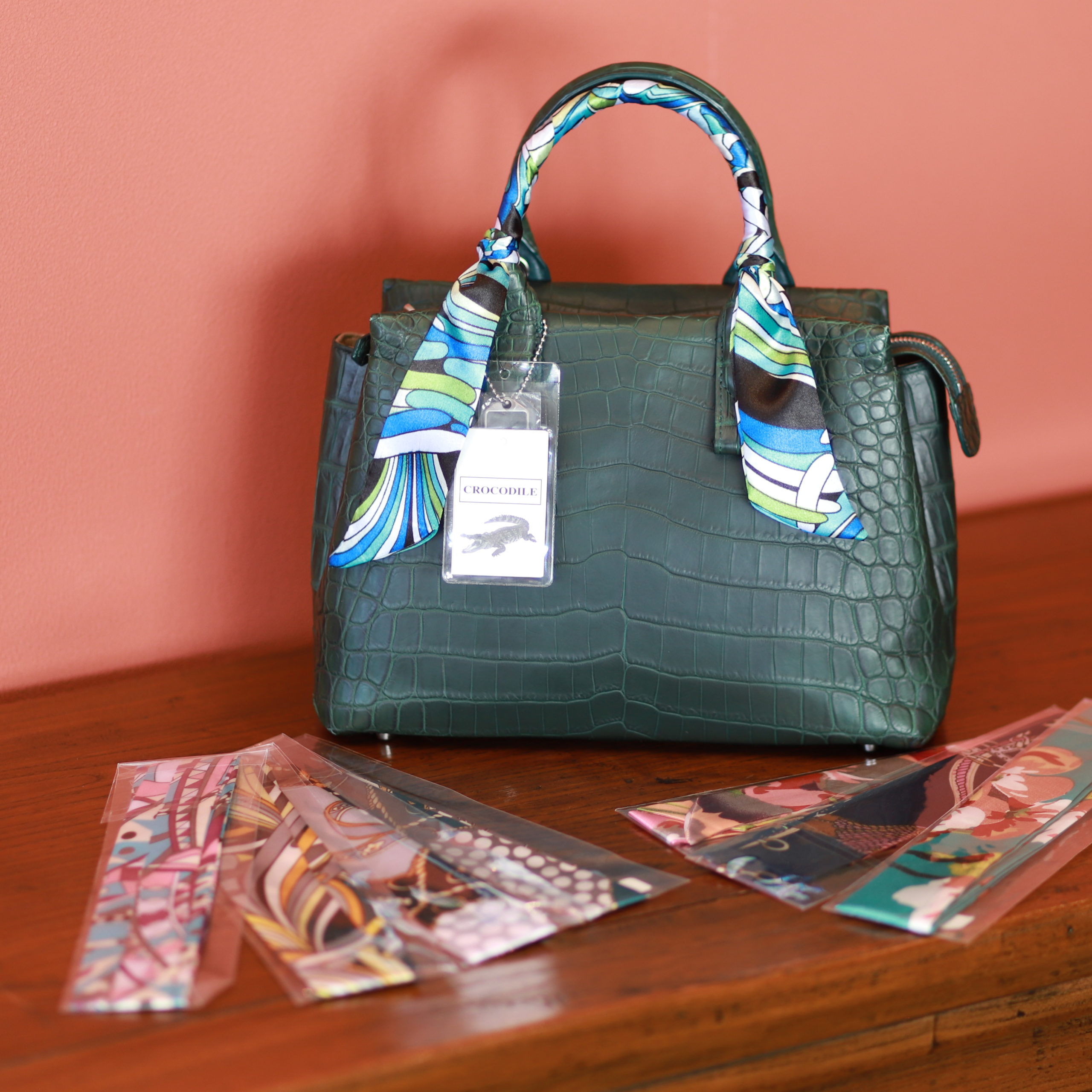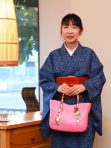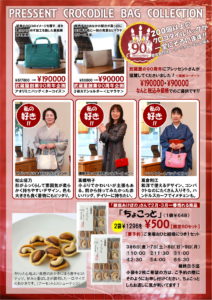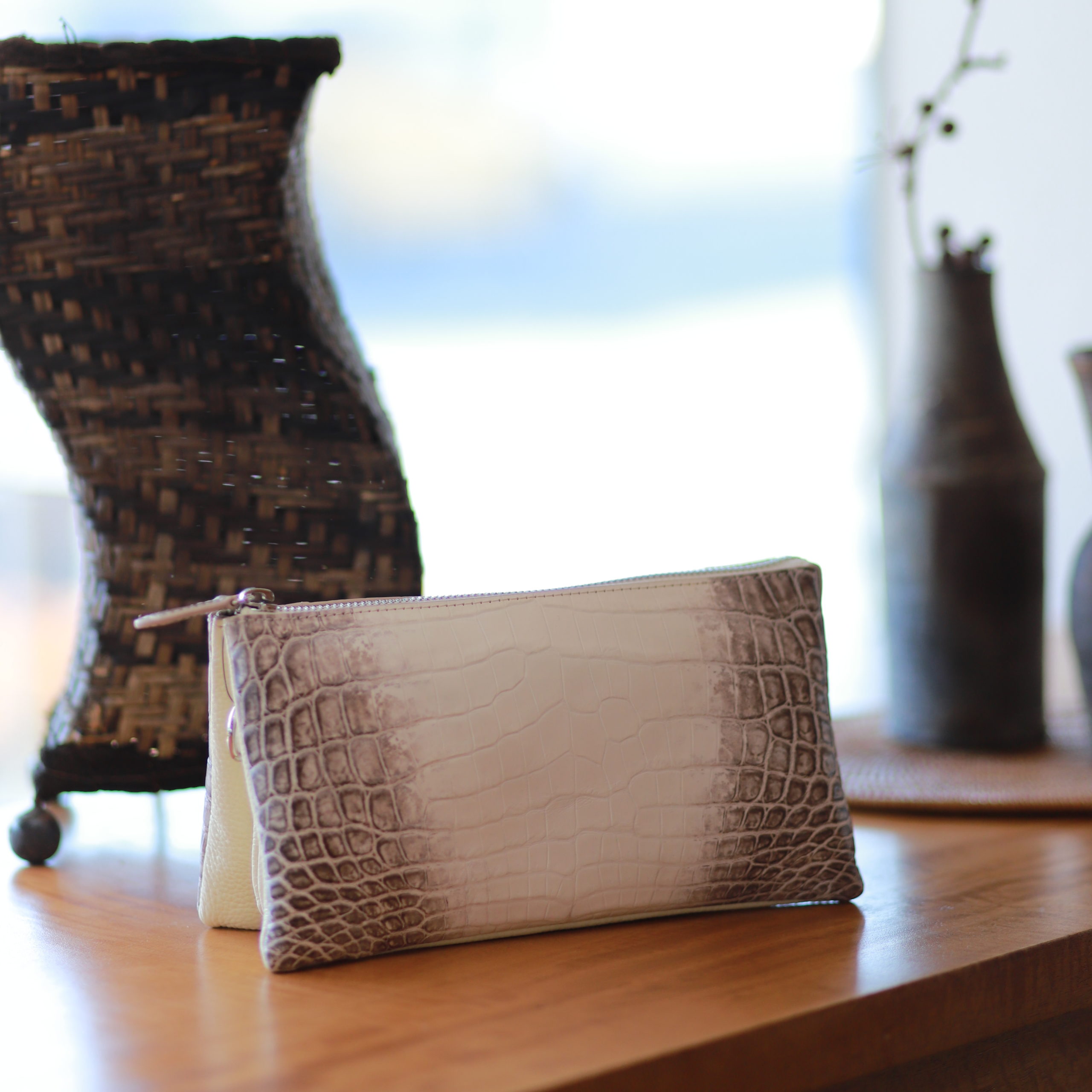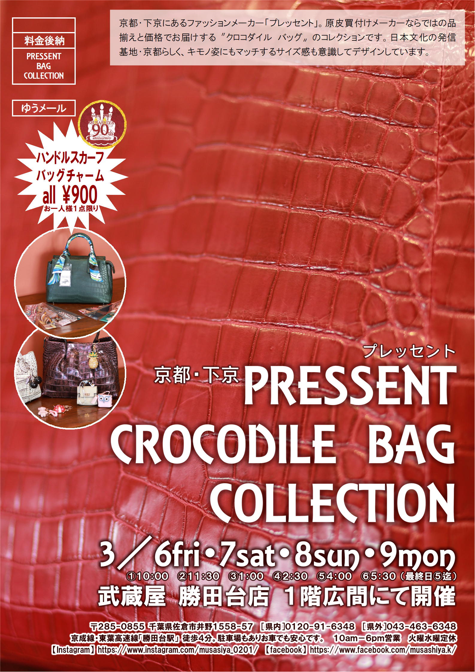 京都・下京にあるファッションメーカー「プレッセント」。原皮買付けメーカーならではの品揃えと価格でお届けする〝クロコダイル バッグ〟のコレクションです。日本文化の発信基地・京都らしく、キモノ姿にもマッチするサイズ感も意識してデザインしています。