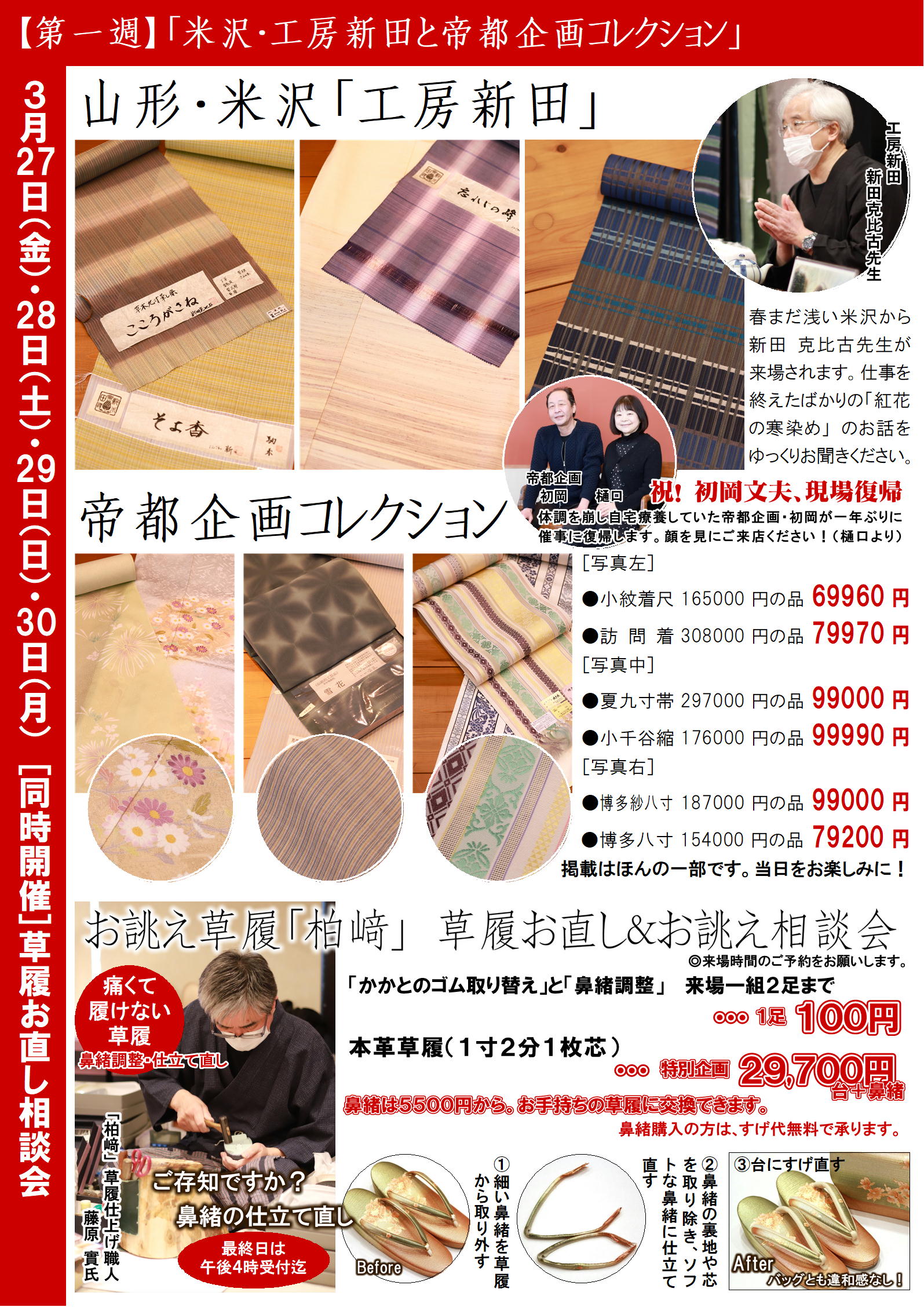 [第一週 草履お直し相談会 3/27(金)~30(月)]