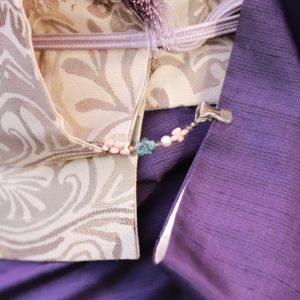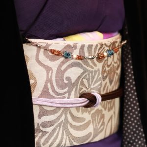 講習内容/羽織紐とたもとクリップから選べます。ガラスビーズの色を選んで、あなたのオリジナル作品が制作できます。大人の女性の装身具を発表している作家・岩井奈緒美先生オリジナルデザインです。
