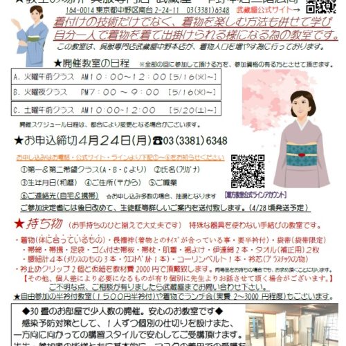 【中野本店】5月スタート着方教室募集開始致しました。