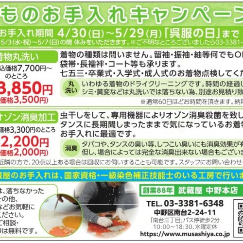 【中野本店】※終了しました※5月のお手入れキャンペーンのお知らせ