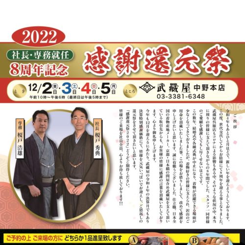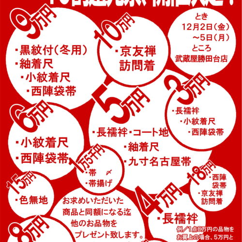 【千葉 勝田台店】「歳末吉例 ファイナルセール」12/2~5 同時開催「草履お直...