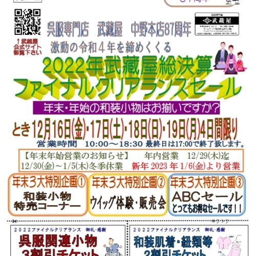 【中野本店】中野本店令和4年最終催事「年末総決算ファイナルクリアランスセール20...