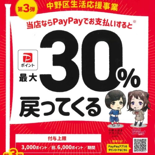 【中野本店】※終了しました※当店は中野区限定paypay30%戻ってくるキャンペ...