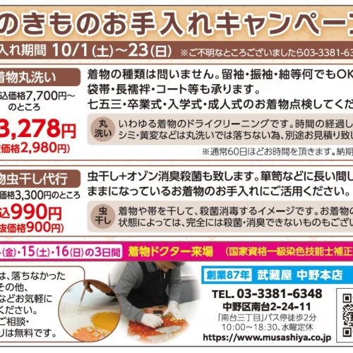 【中野本店】※終了しました※秋のお手入れキャンペーン開催