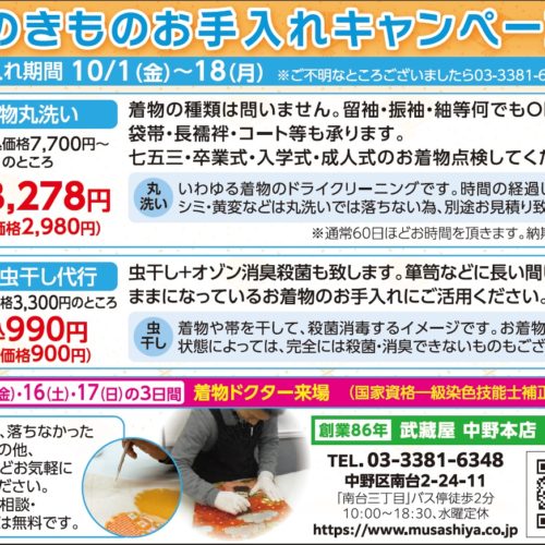【中野本店】※終了しました。※秋のきものお手入れキャンペーン開催10/1(金)よ...