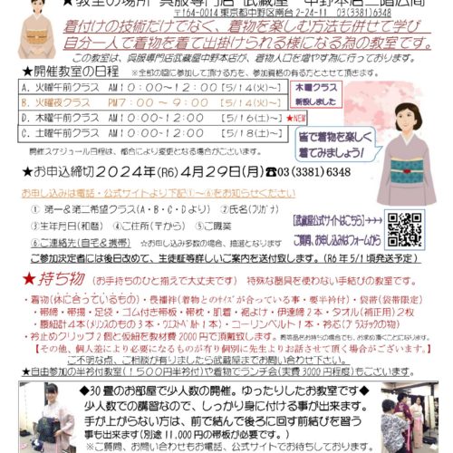【中野本店】着方教室5月生徒募集受付中です。